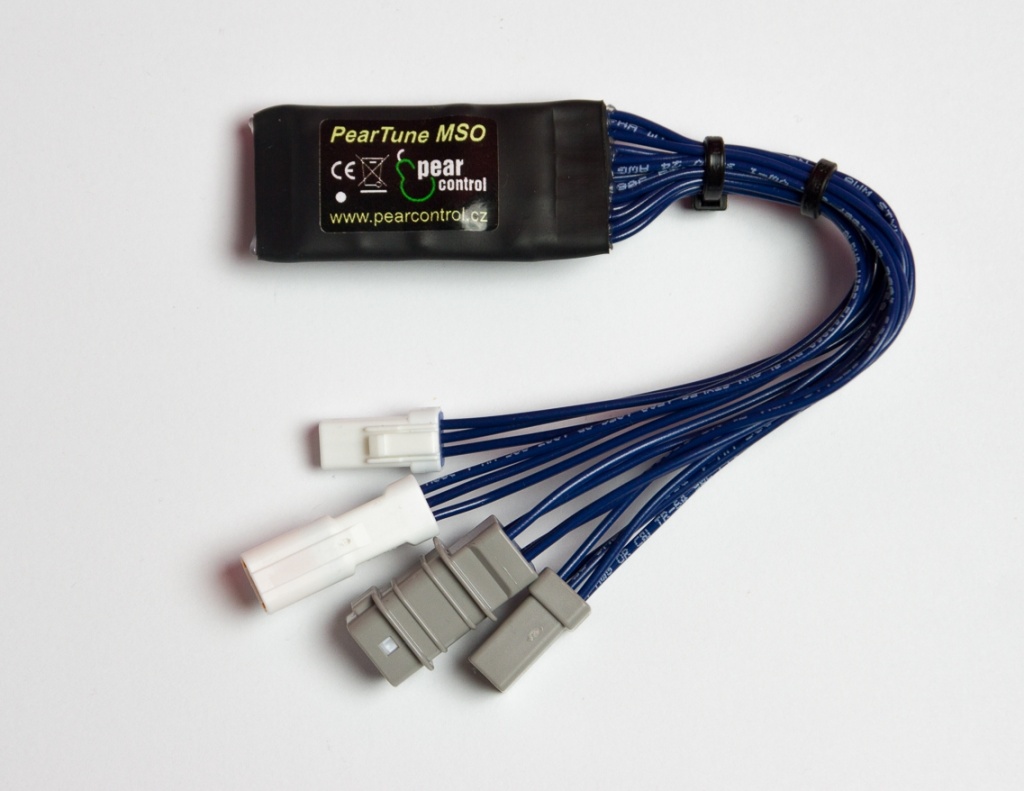 PearTune je zapojeno mezi senzor tachometru a jednotku motoru a mezi display a jednotku motoru. Jako napájení se používá napájení displeje. Veškeré údaje jako je aktuální, průměrná, maximální rychlost, ujetá vzdálenost, atd. zůstávají na displeji pravdivě zobrazovány.